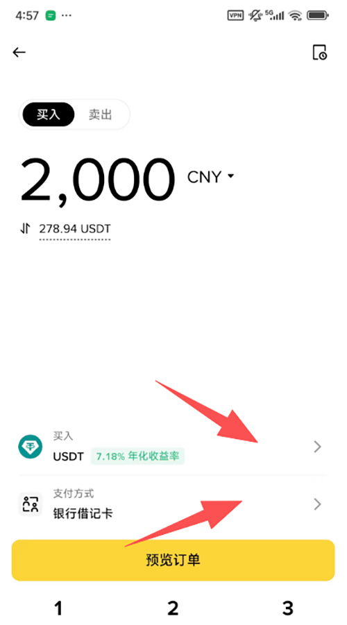 最后在上方输入您想要花费的金额或希望购买的USDT数量即可。